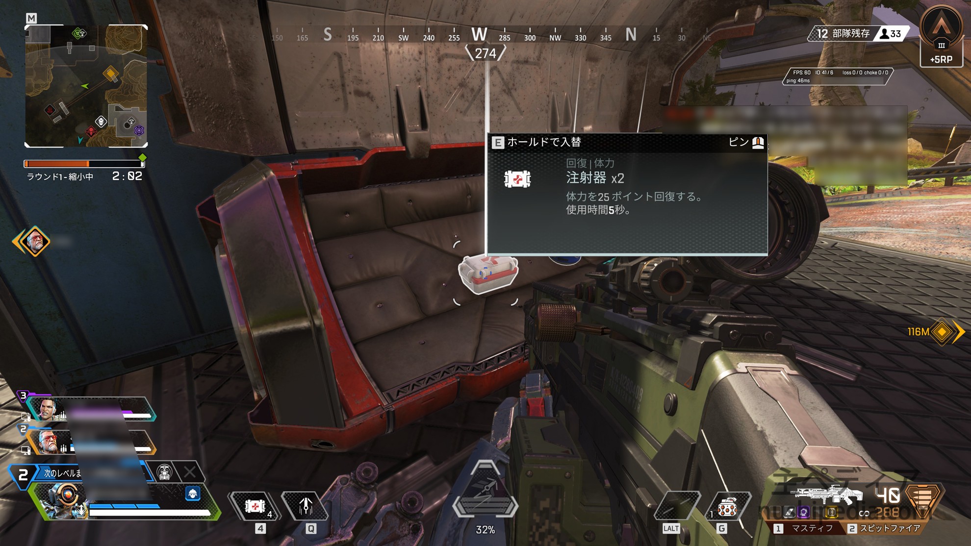 Apexで言う「チビ肉」は体力を回復してくれるアイテム「注射器」のことを指します。